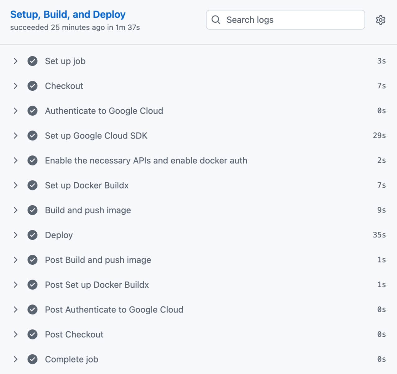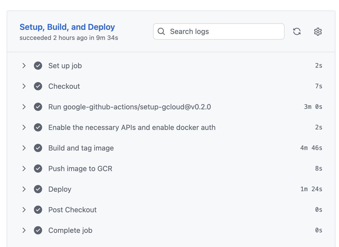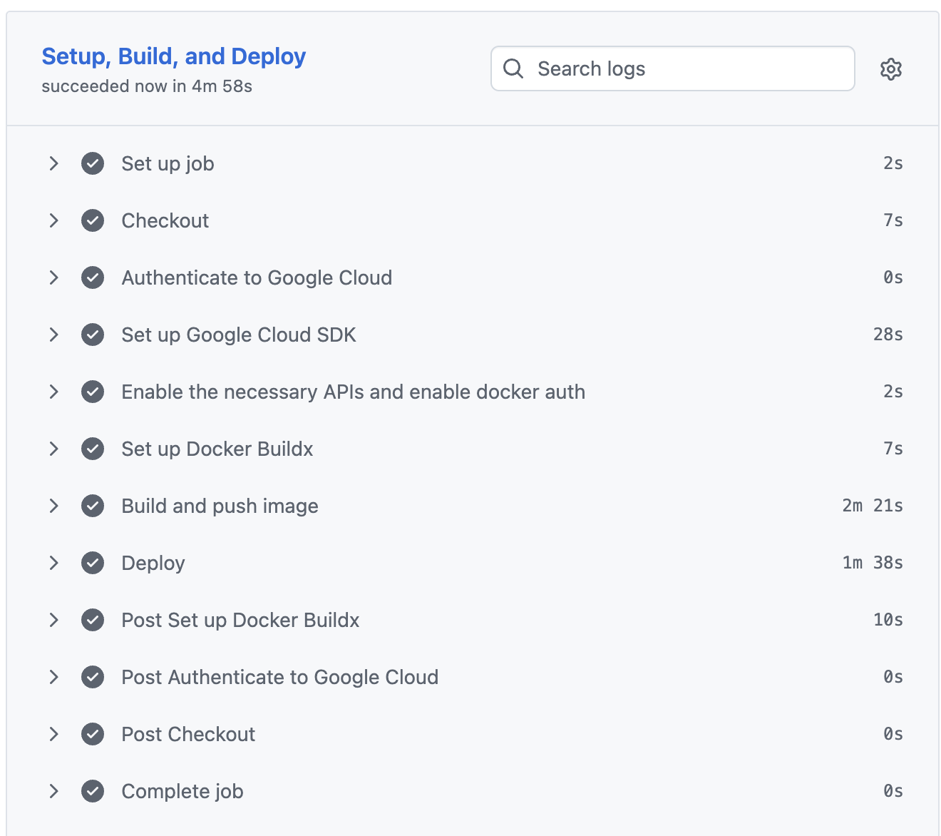 gcloud components install beta 를 실행하던 것을 제거gcloud beta run deploy 대신 GA 명령어 gcloud run deploy 를 직접 사용1분 56초 → 48초로 단축.